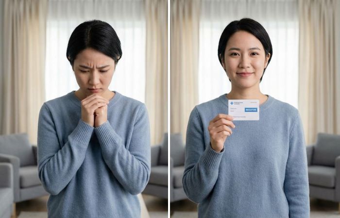 Let’s say you hook up on Friday and test yourself on Sunday. The result? Negative. Relief washes over you… until symptoms show up five days later. You test again, and this time, it’s positive.
