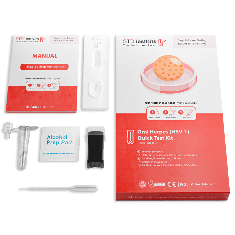 Most people are unaware they have HSV 1, especially if they’ve never had a cold sore. But knowing your status helps with informed decisions around intimacy, symptom management, and avoiding transmission. Our Oral Herpes HSV 1 At-Home Test Kit makes this easy. Using just a finger, prick blood sample, you can check for HSV 1 antibodies in 15 minutes, no clinic or lab required.