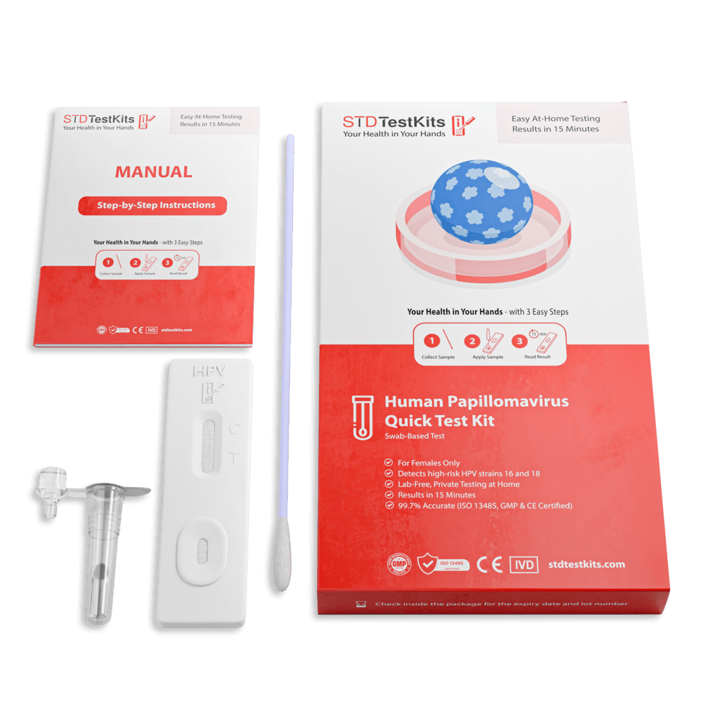 Our HPV At-Home STD Test Kit is designed for women to detect high-risk HPV-16 and HPV-18. It includes a gentle cervical/vaginal swab for easy, painless self-collection. The rapid test detects HPV DNA with 98% accuracy and delivers results in about 15 minutes. No lab or mailing needed, and the kit ships discreetly for privacy. This test complements regular healthcare by empowering you to monitor your risk between doctor visits.